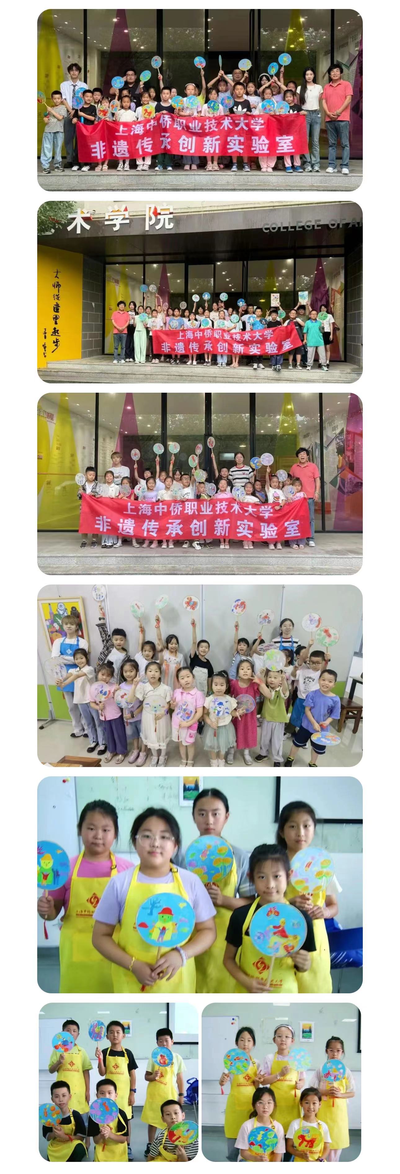 首先,老师向同学们介绍了非物质文化遗产—金山农民画和中国团扇,仔细讲解了在团扇上描绘金山农民画的勾线、构图、调色、上色的创作方法。