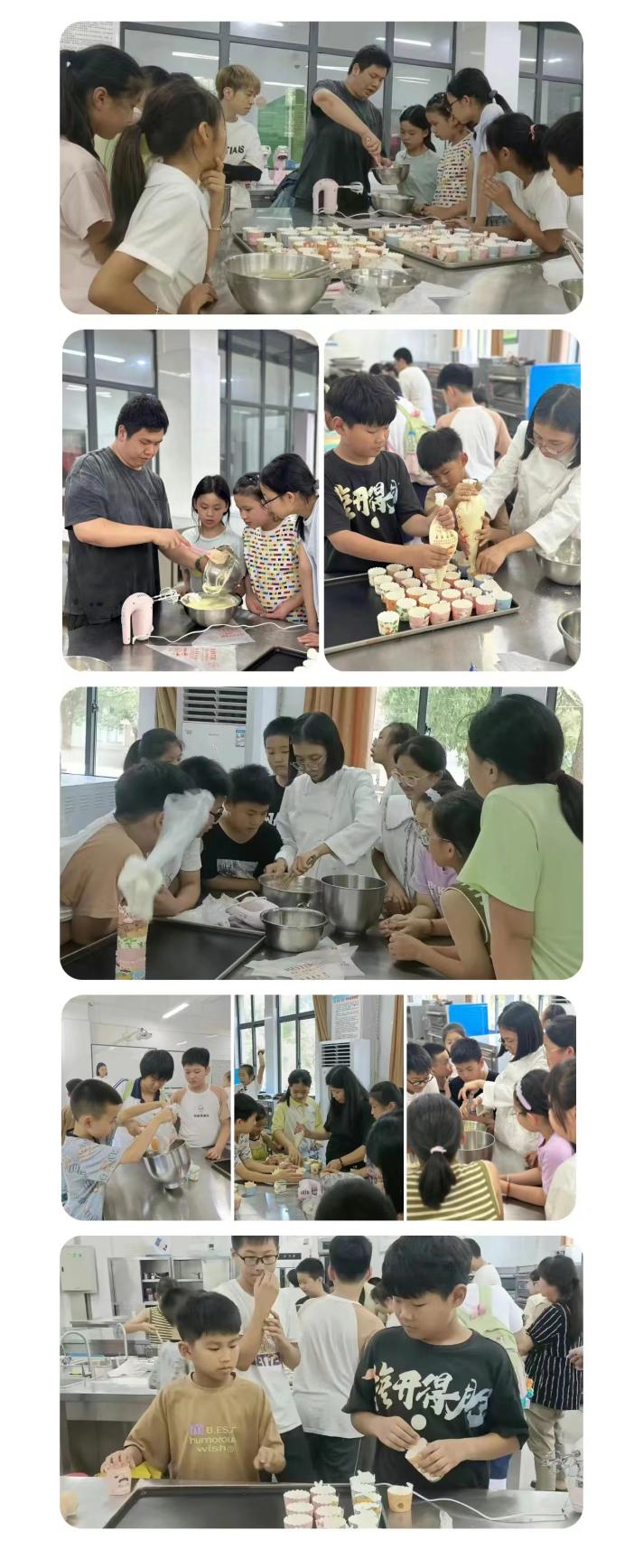 在老师的教学下,和面、搅拌、入模,每一个步骤都井然有序,他们精心的在蛋糕上点缀着新鲜的奶油,那材料的碰撞与他们纯真的心灵相映成趣。当蛋糕被缓缓推出烤箱,香气四溢,孩子们的眼中充满了期待和自豪,仿佛他们已经成为了小小的烘焙大师。