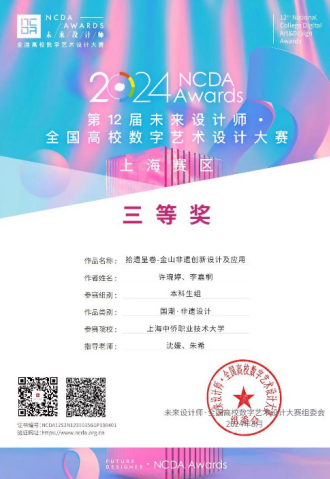 2024年上海中侨职业技术大学艺术学院组织师生参与了全国各类非遗创新创意设计大赛的申报,现已接近年底了,各类赛事获奖情况相继公示,经过前半年赛事组委会的评审,各类作品公示已结束。艺术学院在第五届东方创意之星创新设计大赛在、2024中国包装创意设计大赛、香港数字艺术设计大赛、“UKDA”英国新概念设计奖、2024第十二届未来设计师NCDA大赛、东方设计奖全国高校创新设计大赛等比赛中最终获奖名次揭晓。