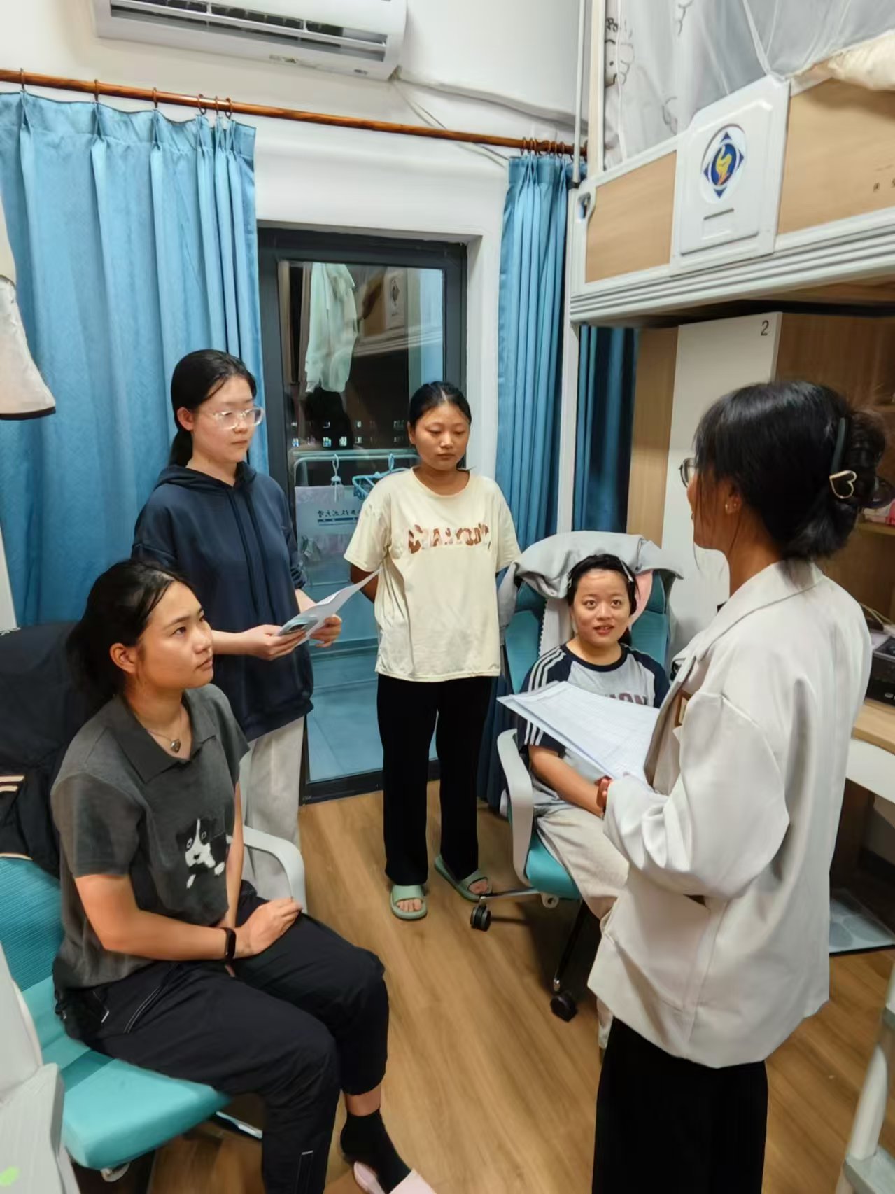 在查寝环节,辅导员们深入学生宿舍,细致检查宿舍卫生、用电安全以及学生作息情况。他们耐心指导学生们如何保持宿舍整洁,强调用电安全的重要性,并鼓励学生们养成良好的生活习惯。同时,辅导员们还关心学生的身心健康,与他们亲切交流,了解他们的学习、生活及思想动态,为他们提供必要的帮助和指导。