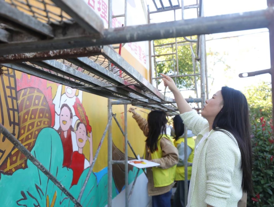 11月7日,上海中侨职业技术大学教师党支部组织师生赴上海松江区泖港镇新建村开展墙绘修补填色志愿服务。此次活动,是艺术学院教师党支部积极响应党的号召,深入基层、服务群众的重要举措。通过墙绘这一艺术形式,不仅能够美化乡村环境,提升乡村文化氛围,更能够促进学院与乡村之间的文化交流与融合,为乡村的文化建设贡献一份力量。