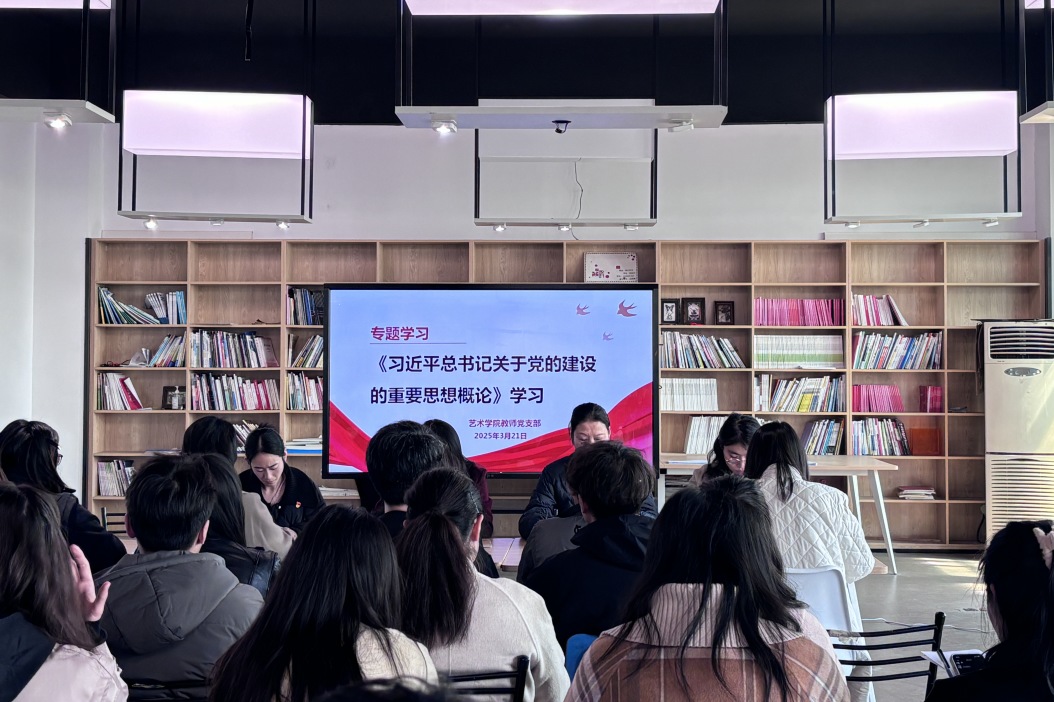 2025年3月21日,艺术学院教师党支部在5-301开展《习近平总书记关于党的建设的重要思想概论》专题学习会。艺术学院党总支书记戴红梅、党总支副书记杨莉、校组织部刘玉琴老师及艺术学院教师支部全体党员参加了此次会议。