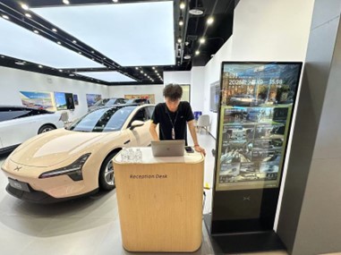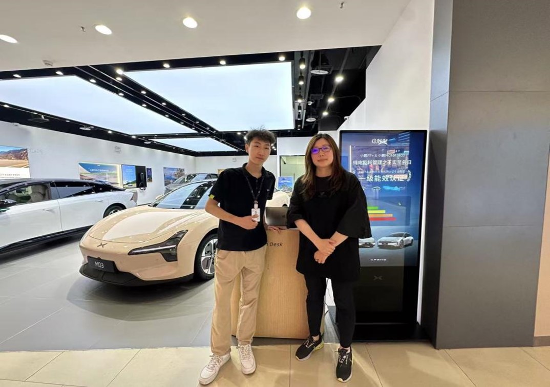 在郑子凡同学的陪同下,夏敏老师实地参观了销售中心的各个功能区域。车辆展示区里,线条流畅、造型前卫的小鹏汽车错落有致,配合艺术化的灯光与场景布置,完美诠释了工业设计与美学的融合;智能体验区中,先进的自动驾驶模拟系统、智能座舱交互设备,让参观者直观感受新能源汽车的科技魅力;客户洽谈区则采用温馨舒适的装修风格,搭配智能交互设备,为客户带来便捷高效的购车咨询服务。负责人详细介绍了销售中心的运营模式、人才需求以及员工培养计划。目前,销售中心采用线上线下相结合的新零售模式,注重用户体验与品牌传播,除传统销售岗位外,对具备艺术设计、新媒体运营等专业背景的复合型人才需求持续增长。针对新员工,销售中心制定了涵盖产品知识、销售技巧、职业规划等方面的系统培训计划,助力员工快速成长。